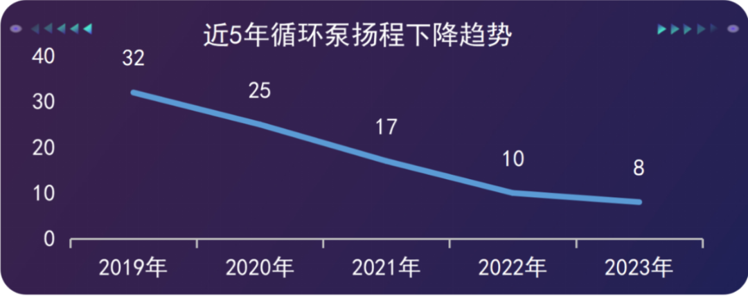 通过以上手段,大多数热力站的循环水泵扬程从2019年的30m左右降到了2023年的10m左右。(图7-10)